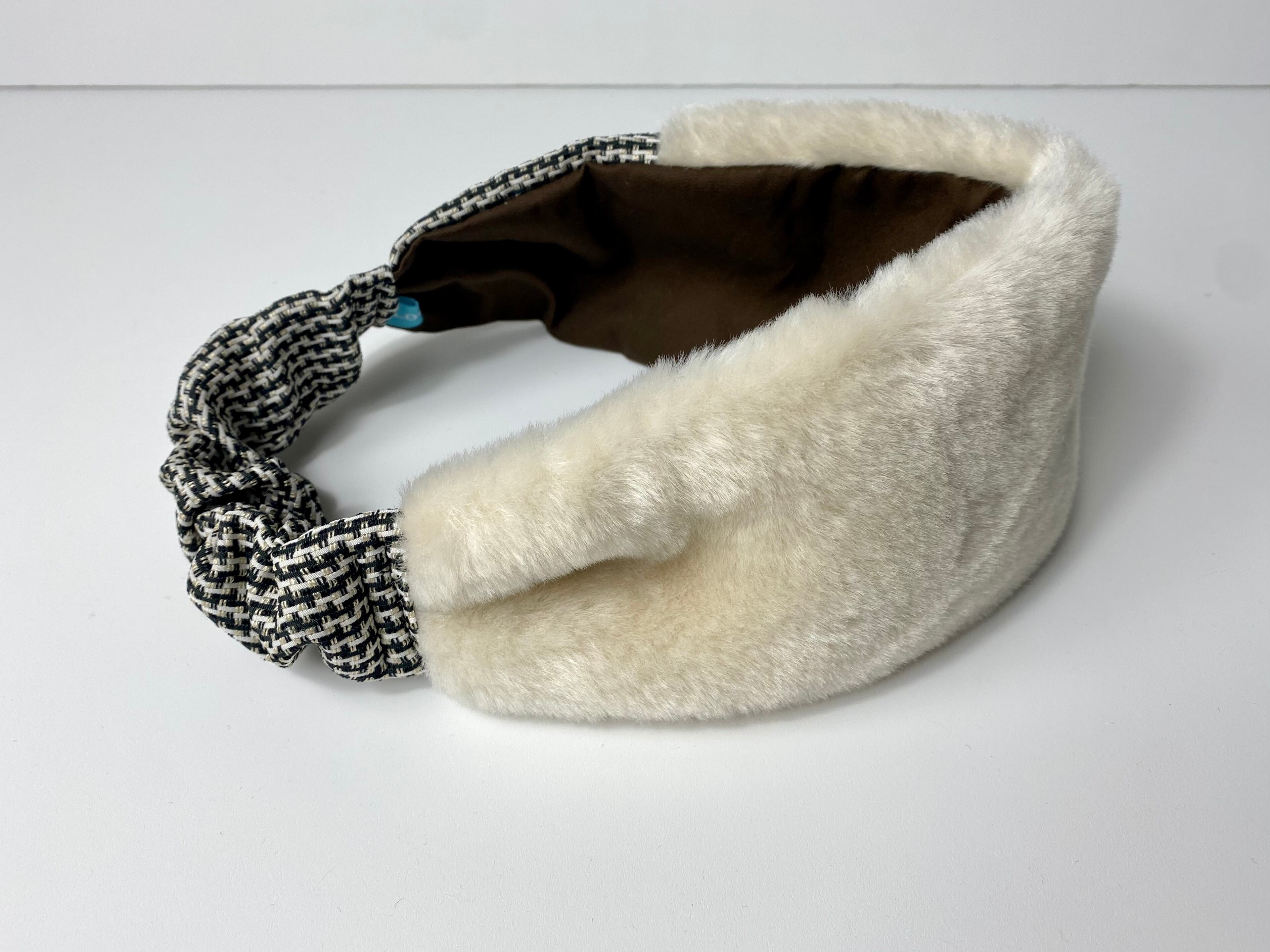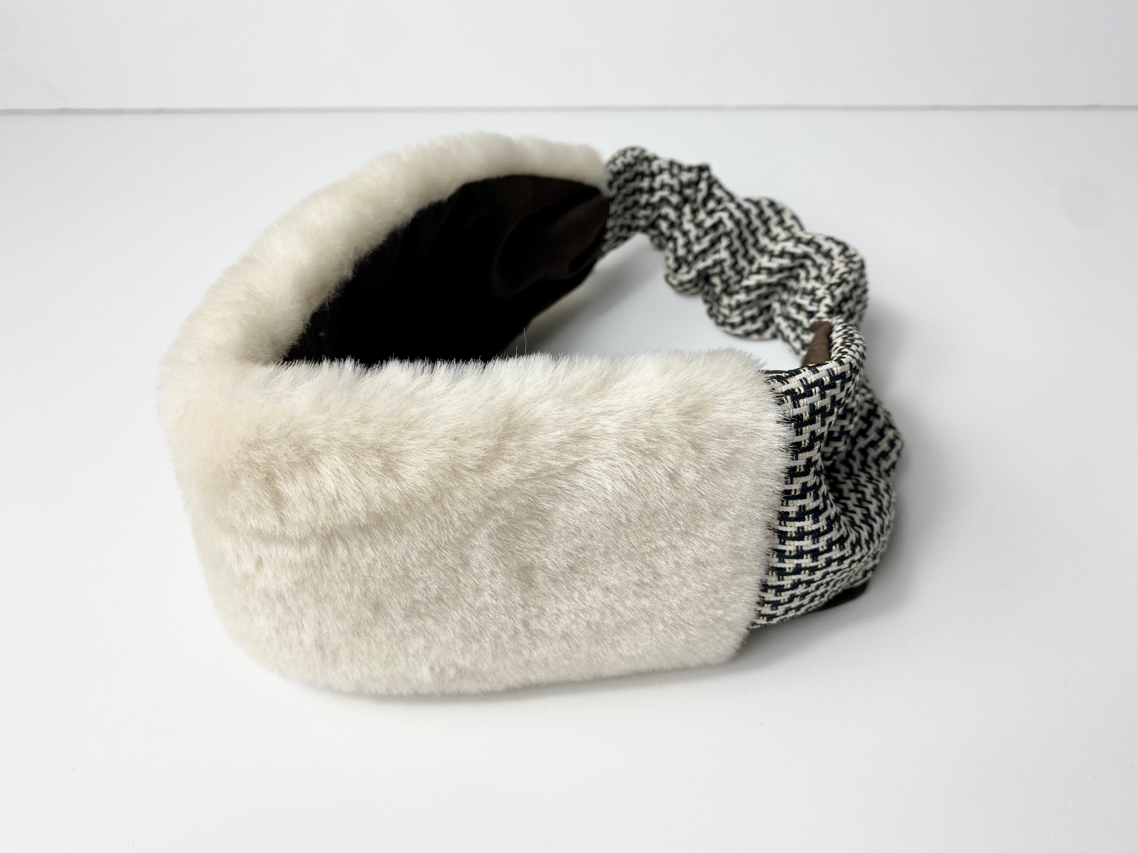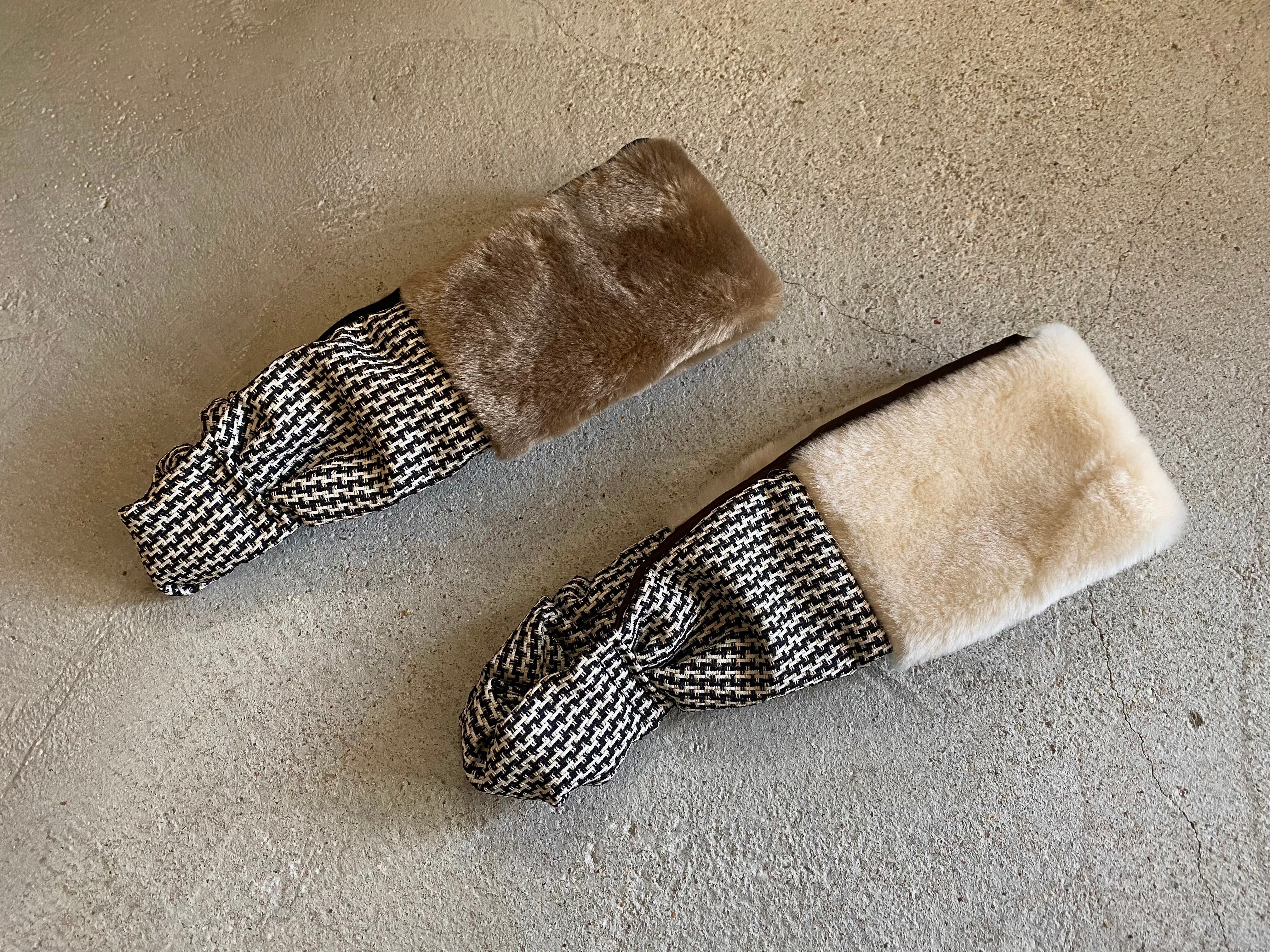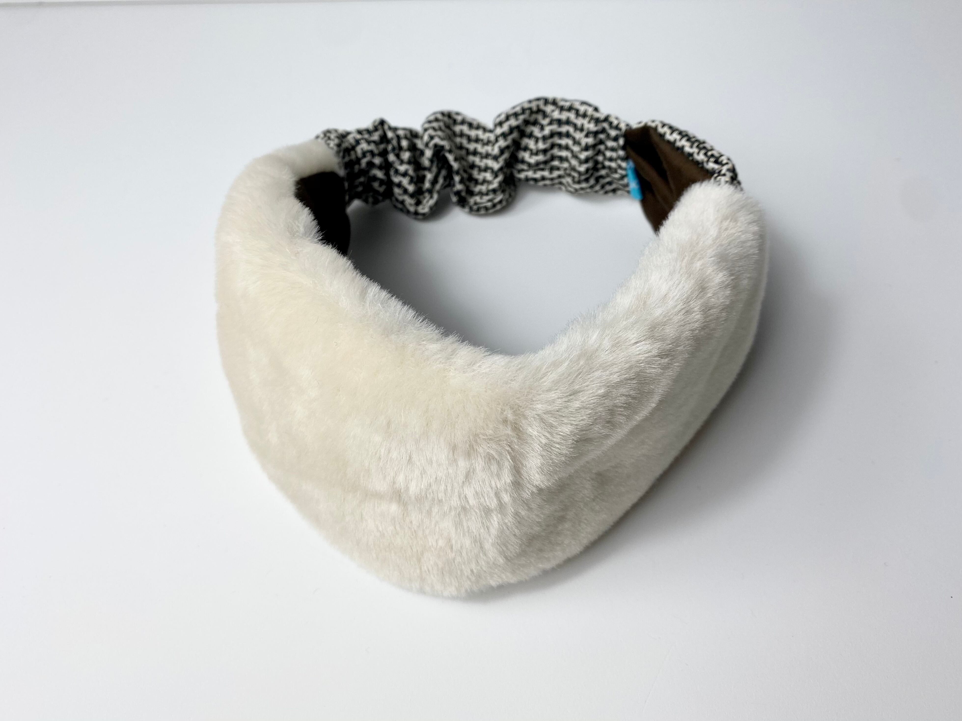 可愛いホワイトファーと派手すぎない幾何学模様は