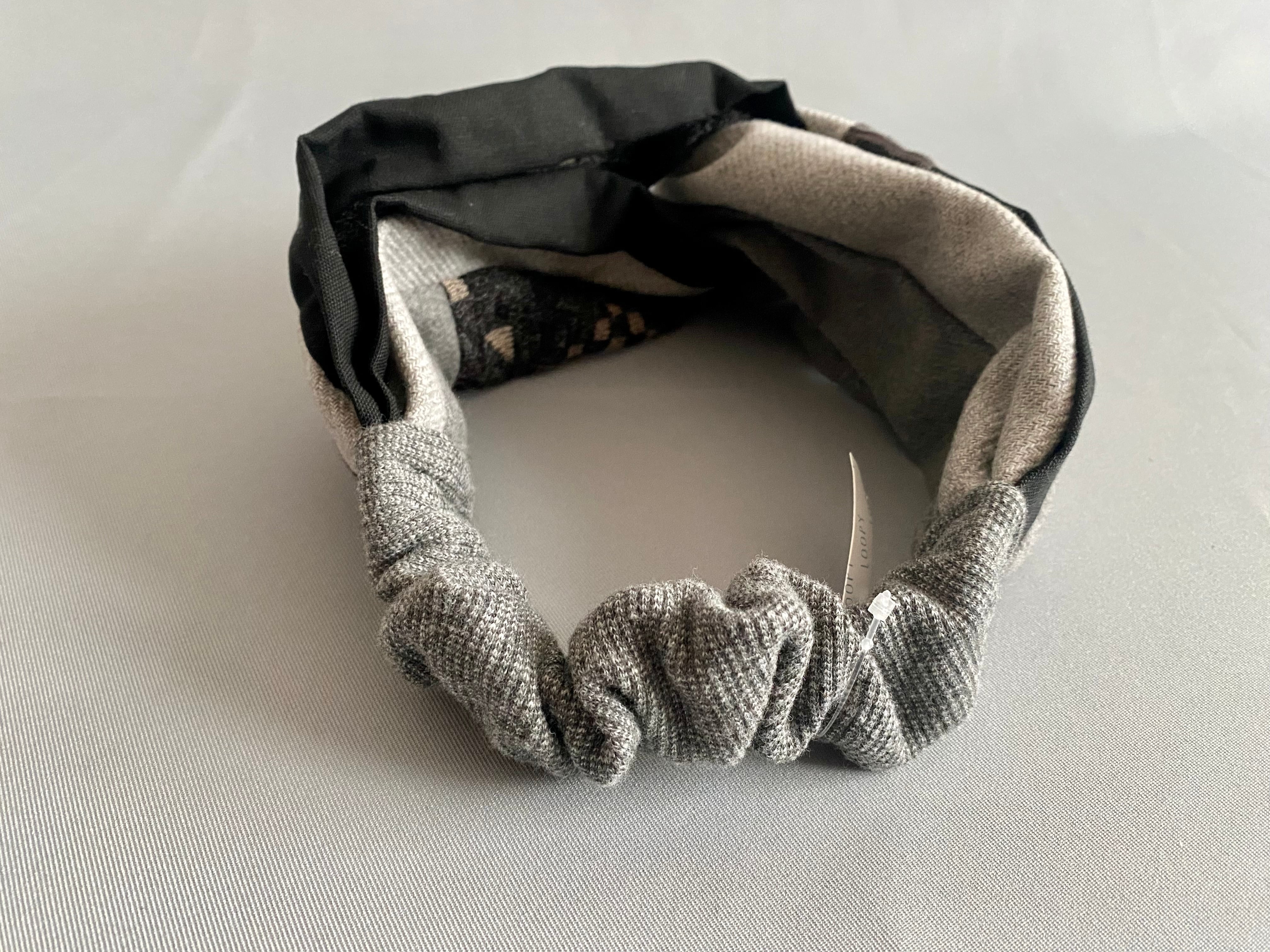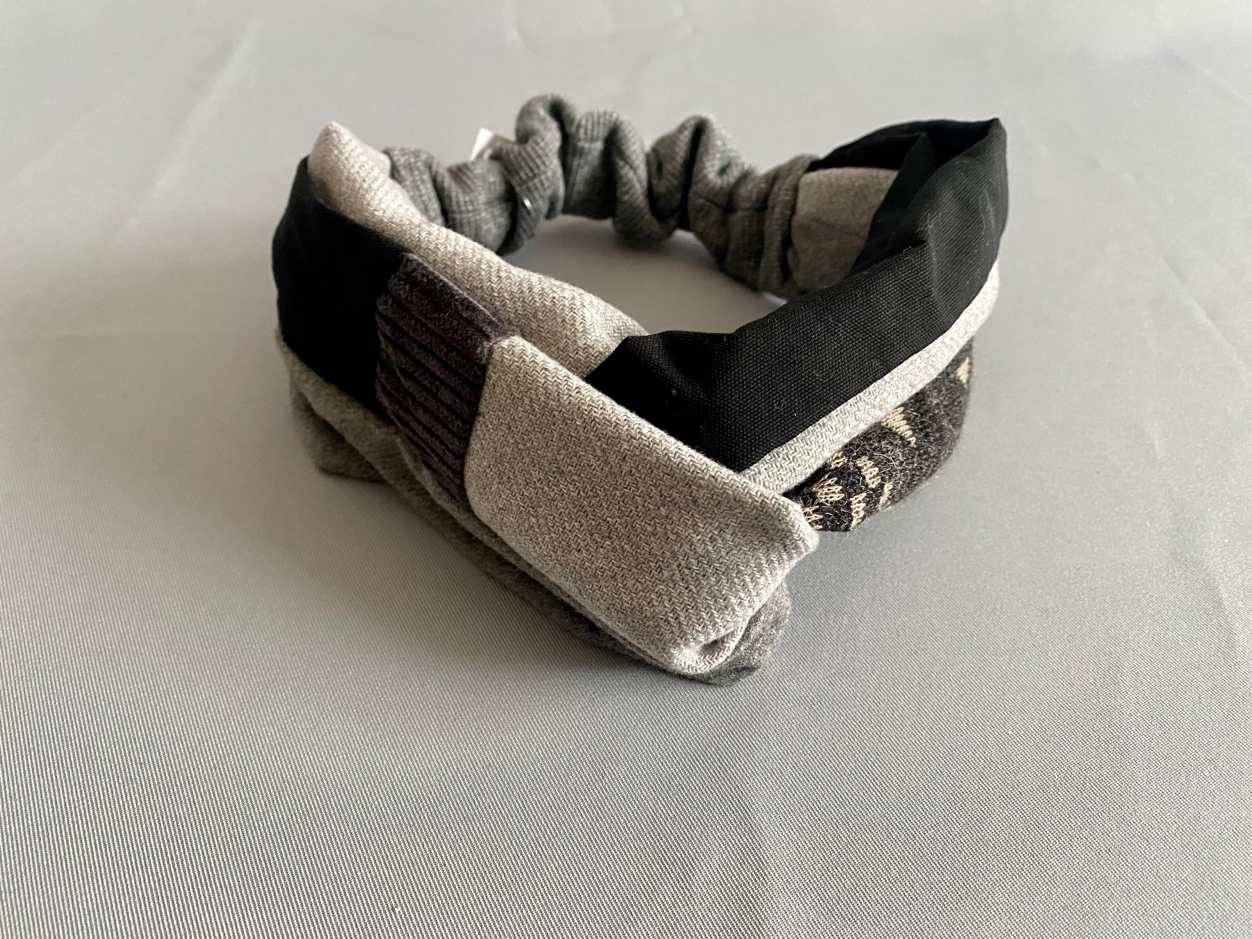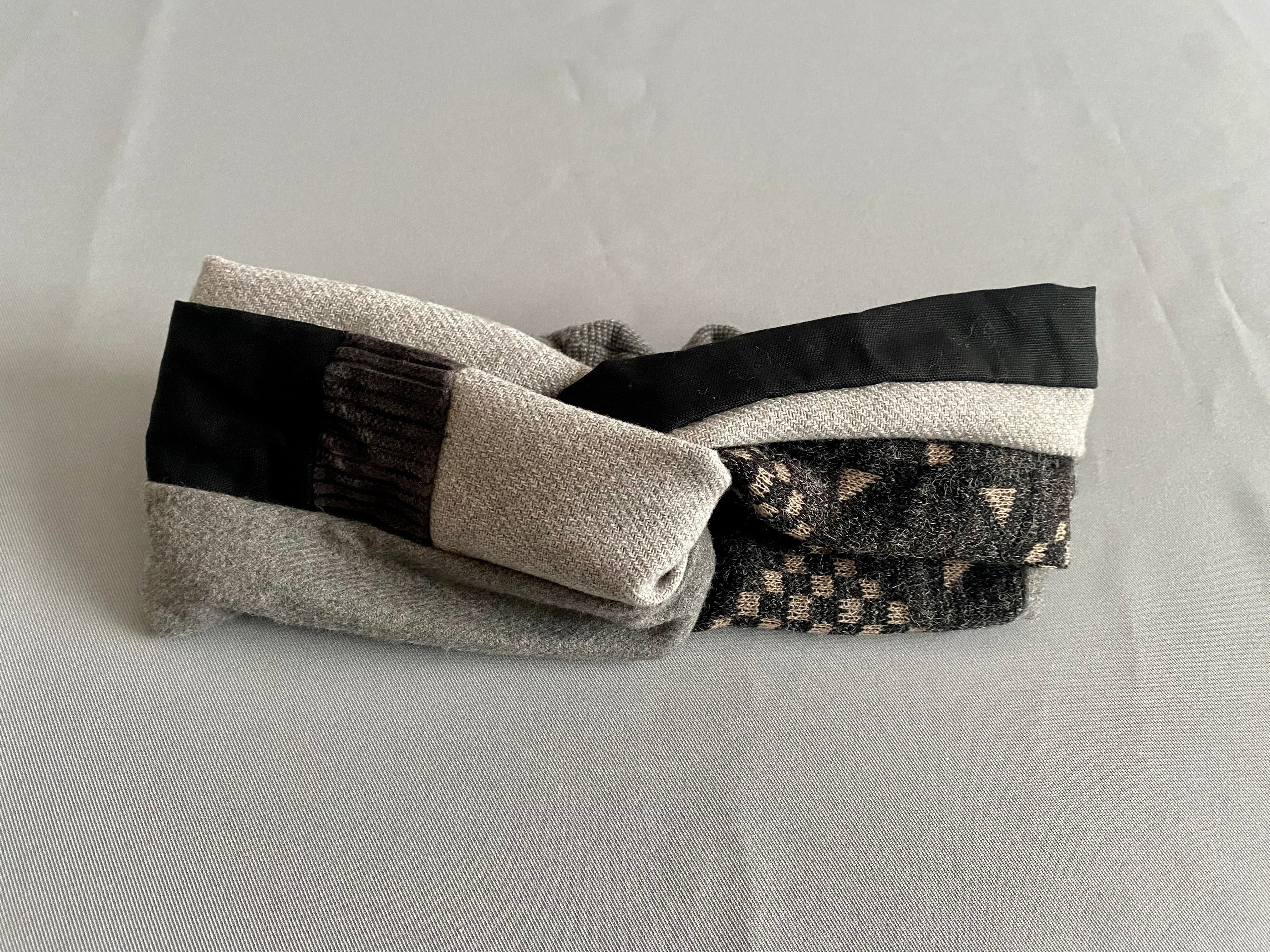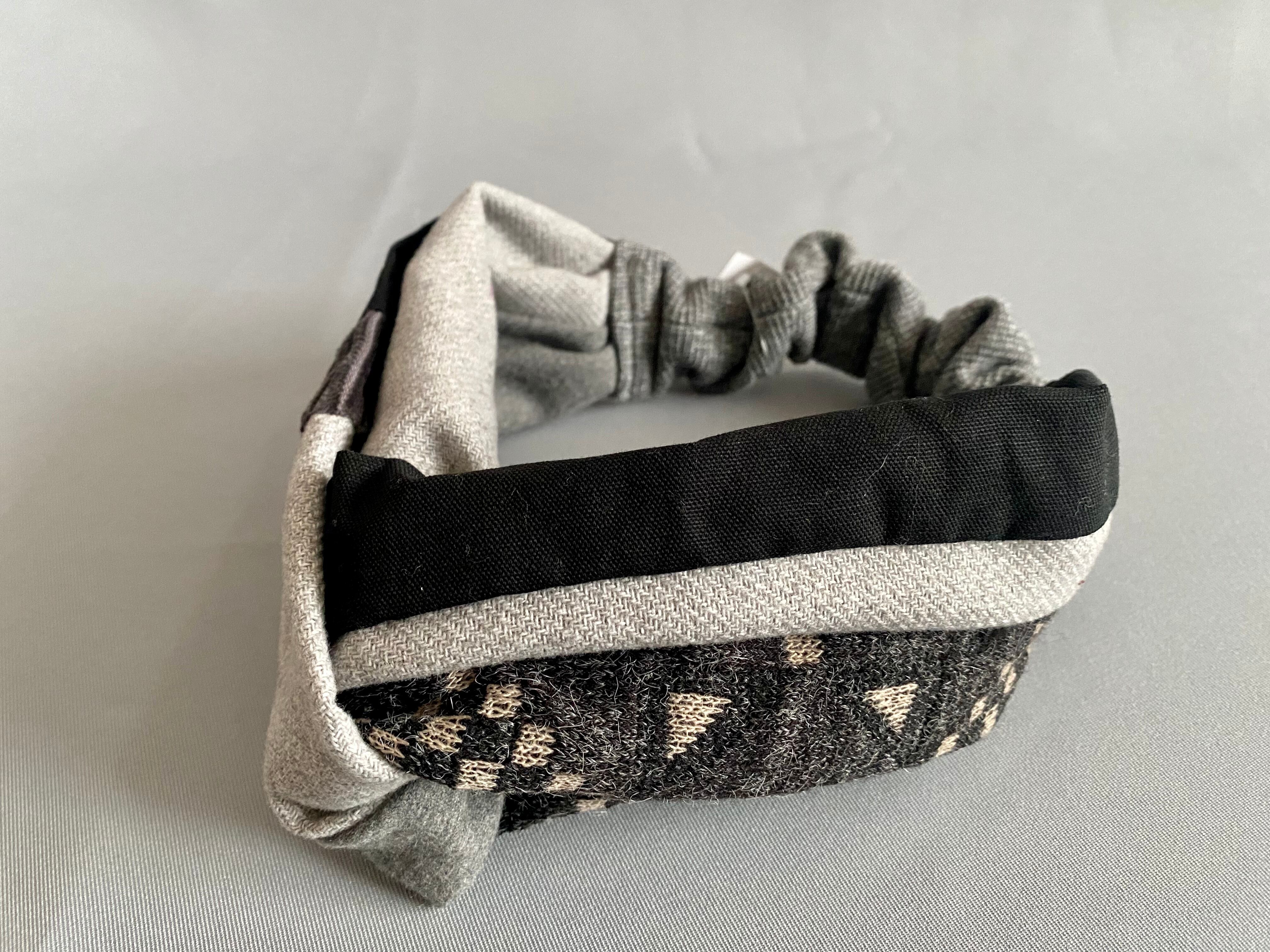 グレーの柄物のコットン・ポリエステルのニット生地をポイントに、