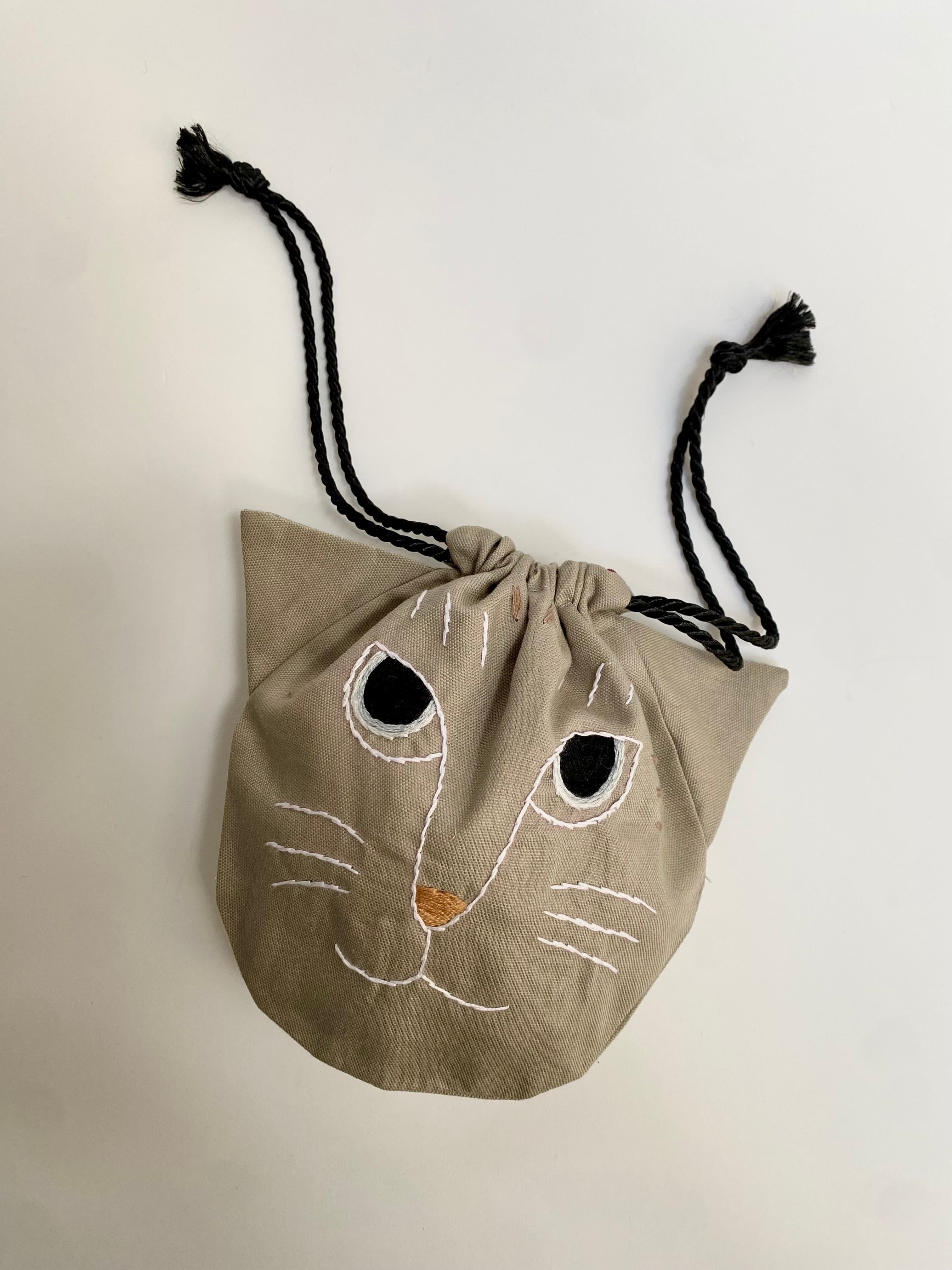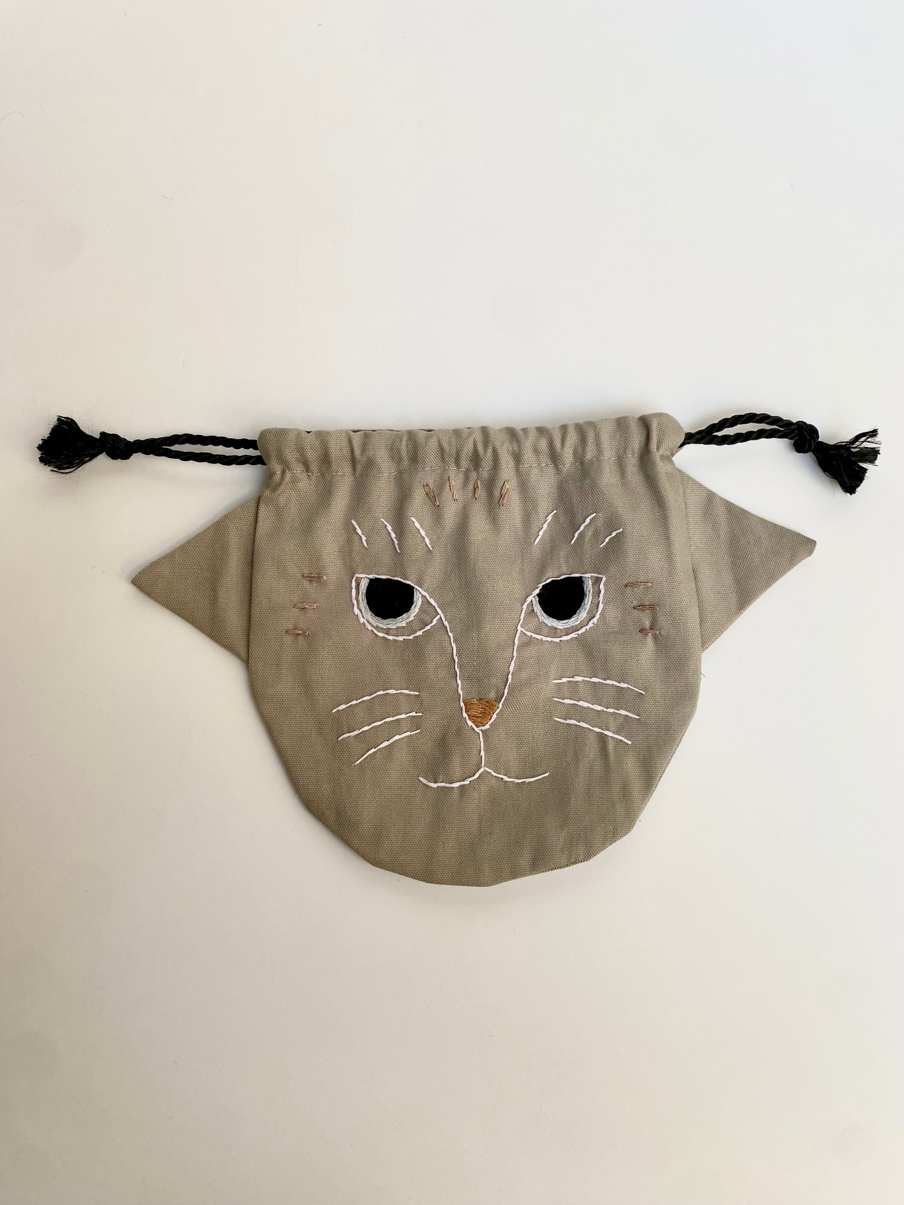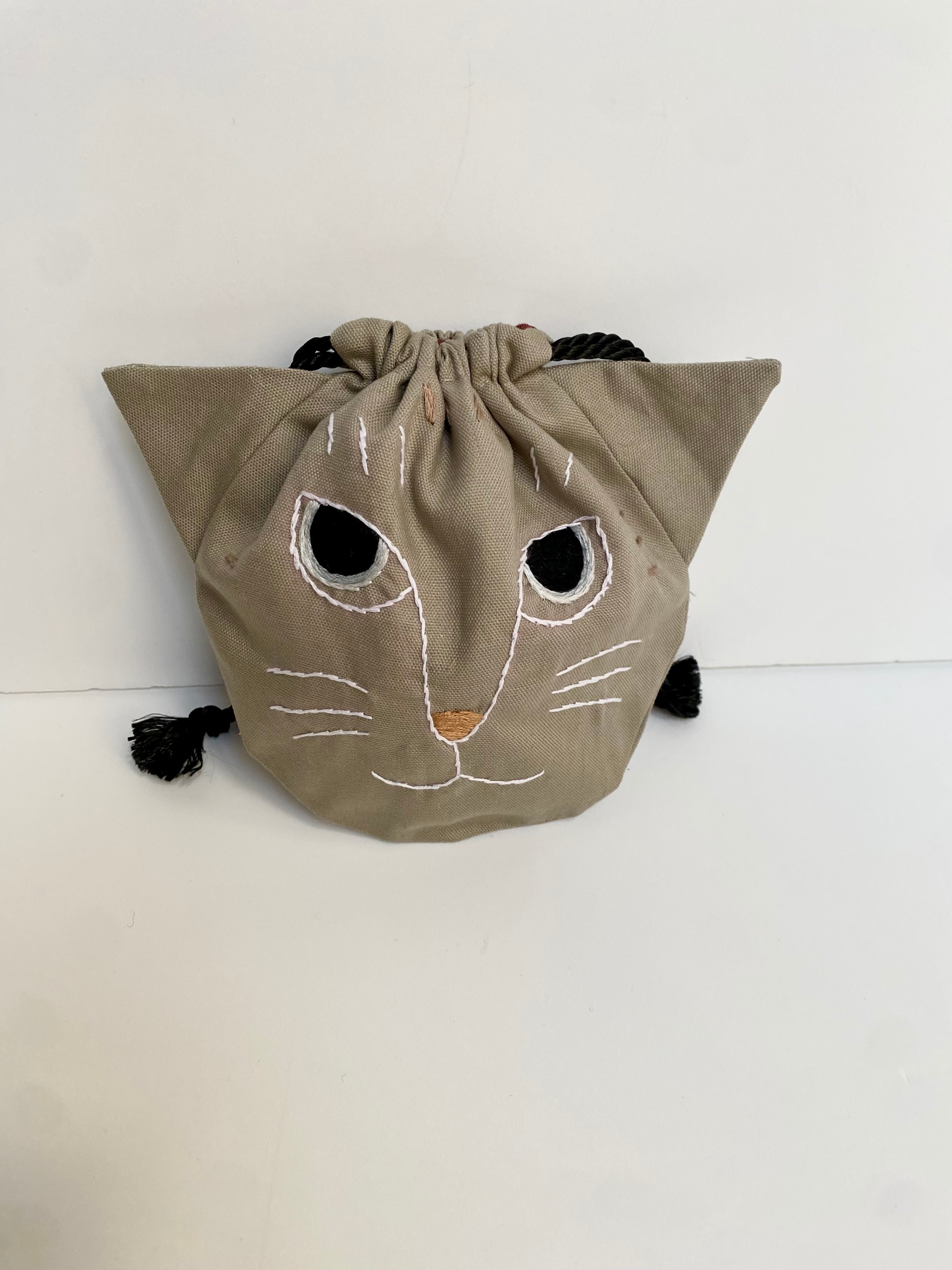 グレージュ猫の巾着です。